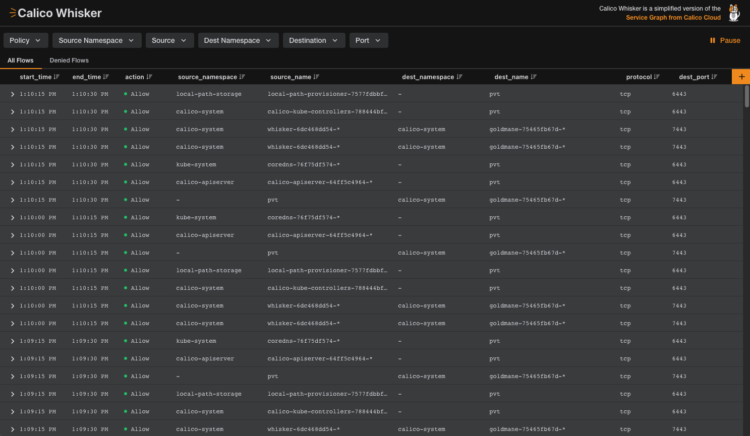 Step 3. Monitor network traffic in Calico Whiskerβ